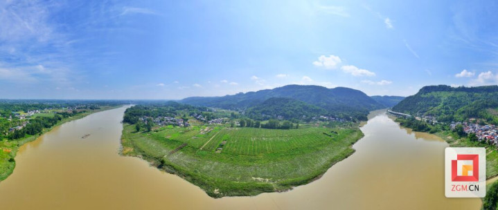 8月20日,初秋时节,记者走进艾家村,只见悠悠沱江如同一条灵动的丝带,轻轻环绕着村庄。沿岸的滩涂地上,一片片沿江绿地、蔬菜农田遍布其中。面朝江水而立,抬眼可见沱江的烟波浩渺。江阔水云宽,一派沱江之畔特有的村落风光。
